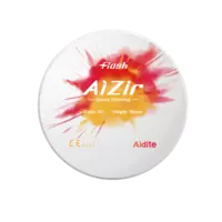 Aidite AiZir Flash 1250MPa strength with 48% translucency and is indicated for full-contour restorations 98mm diameter x 18mm thickness.